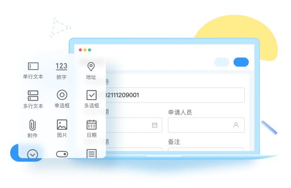 拥有丰富的组件类型;通过拖拽的方式,满足复杂多样的业务场景,实现无纸化办公